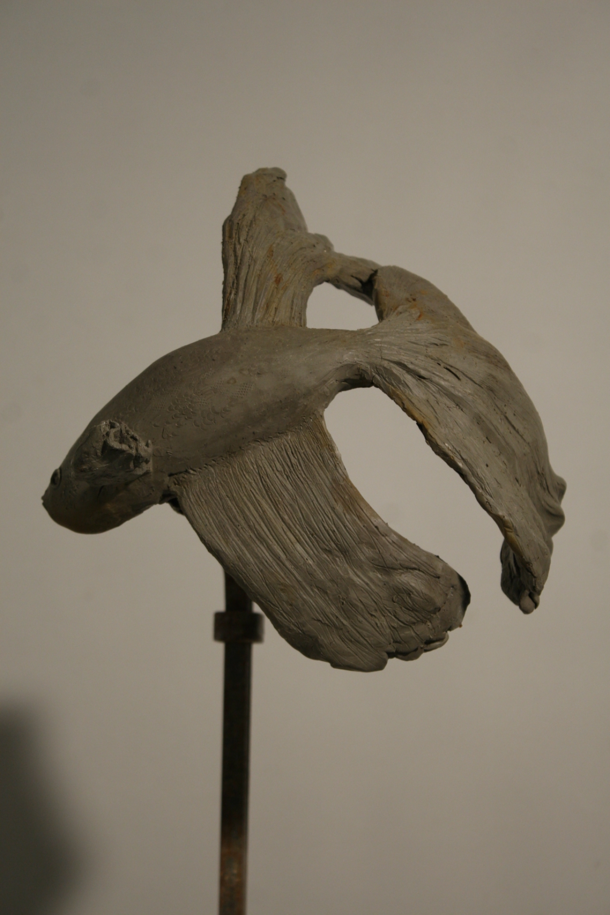 彫塑)ベタ 窪田理紗 東京ビジュアルアーツ専門 OVERVIEW 彫塑でベタを作りました YEAR 2021 彫塑で熱帯魚特有のヒレの滑らかさや色の感じを表現することを意識しました水に靡く尾びれを分厚く付けた粘土で表現するのが難しかったです全体の流れを捉えてから細かく彫刻することで薄いヒレを表現出来たと思います