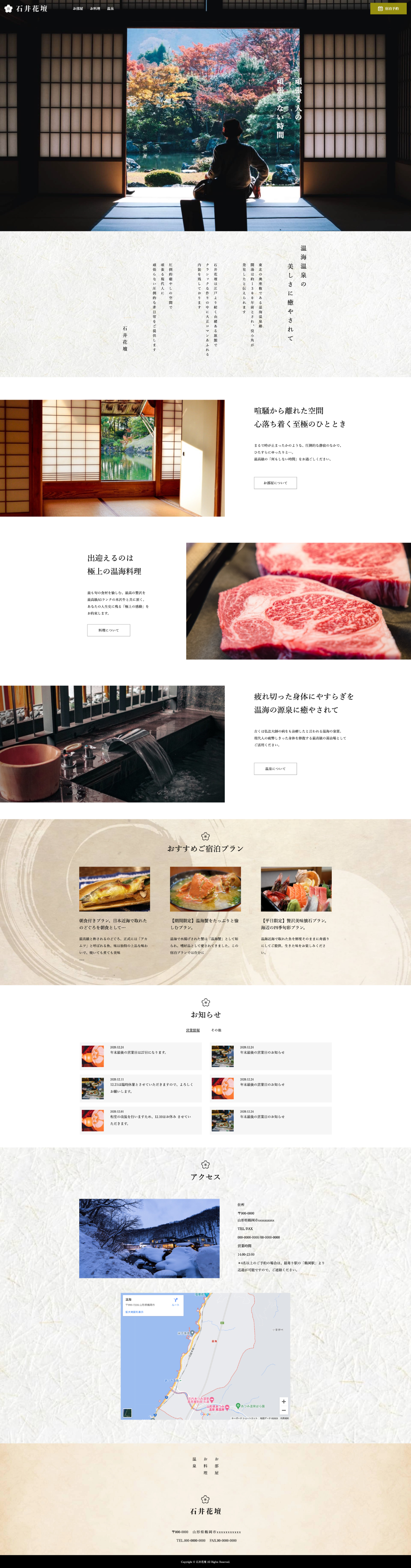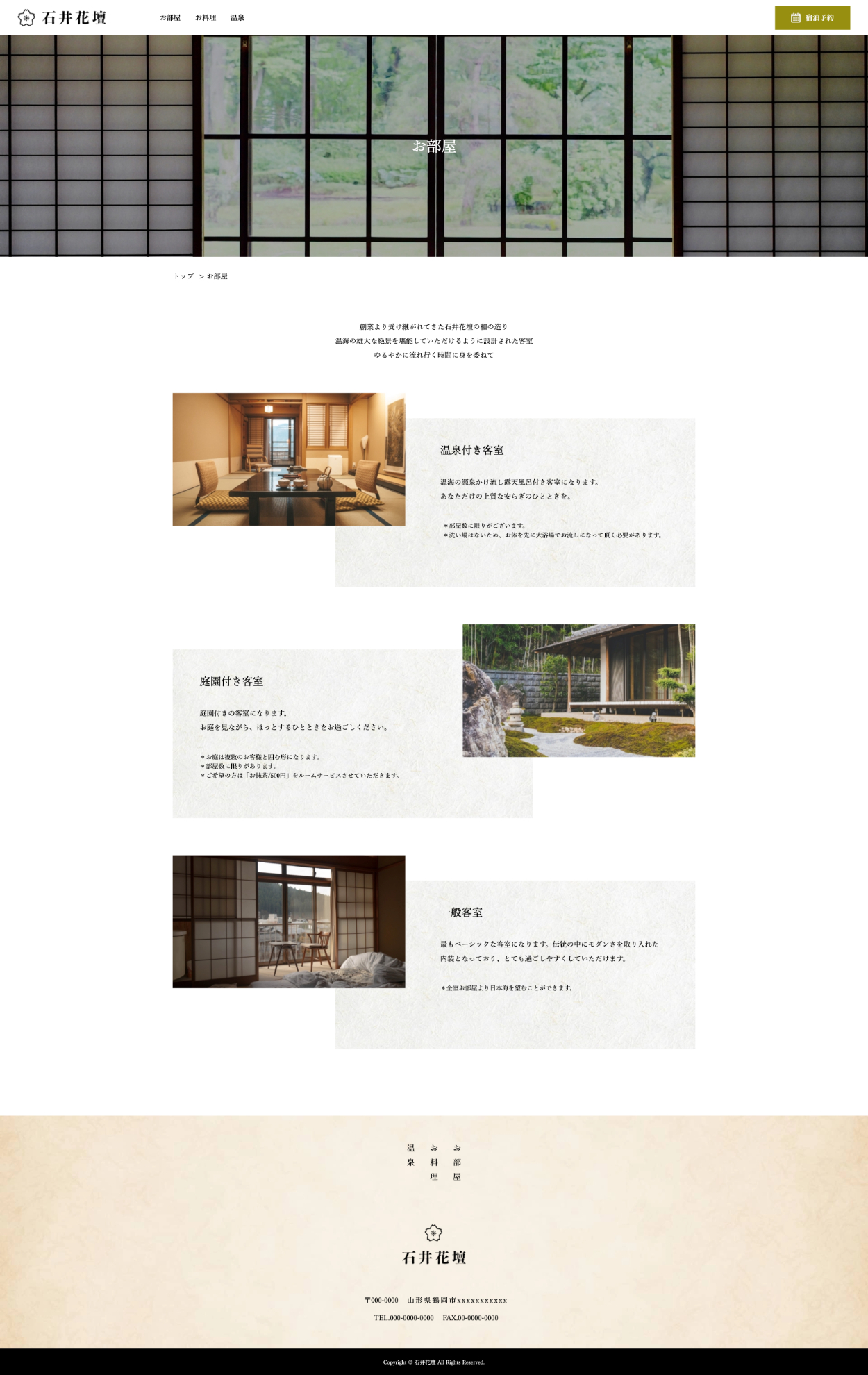 サイト構成:トップ、下層(お部屋 / お料理 / 温泉)