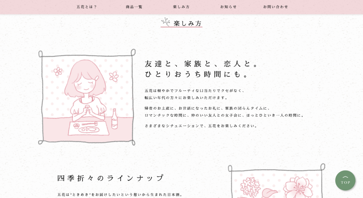 ……「かわいいお酒」「おしゃれなお酒」「女子会お酒」などのキーワードからWEBサイトにたどり着いてもらい、WEBサイトを通じて商品の魅力を感じてもらうことで、実際に購入して味わっていただく。売り上げアップ!