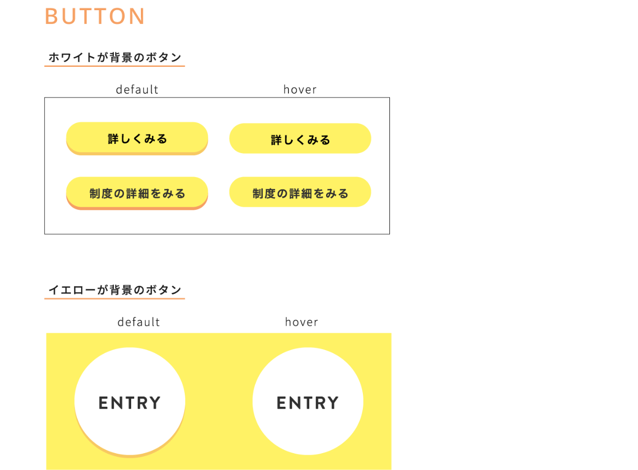 - ホバー時のアニメーションは視認性が高くなるよう、立体的に動く(沈み込む)ようにしました。