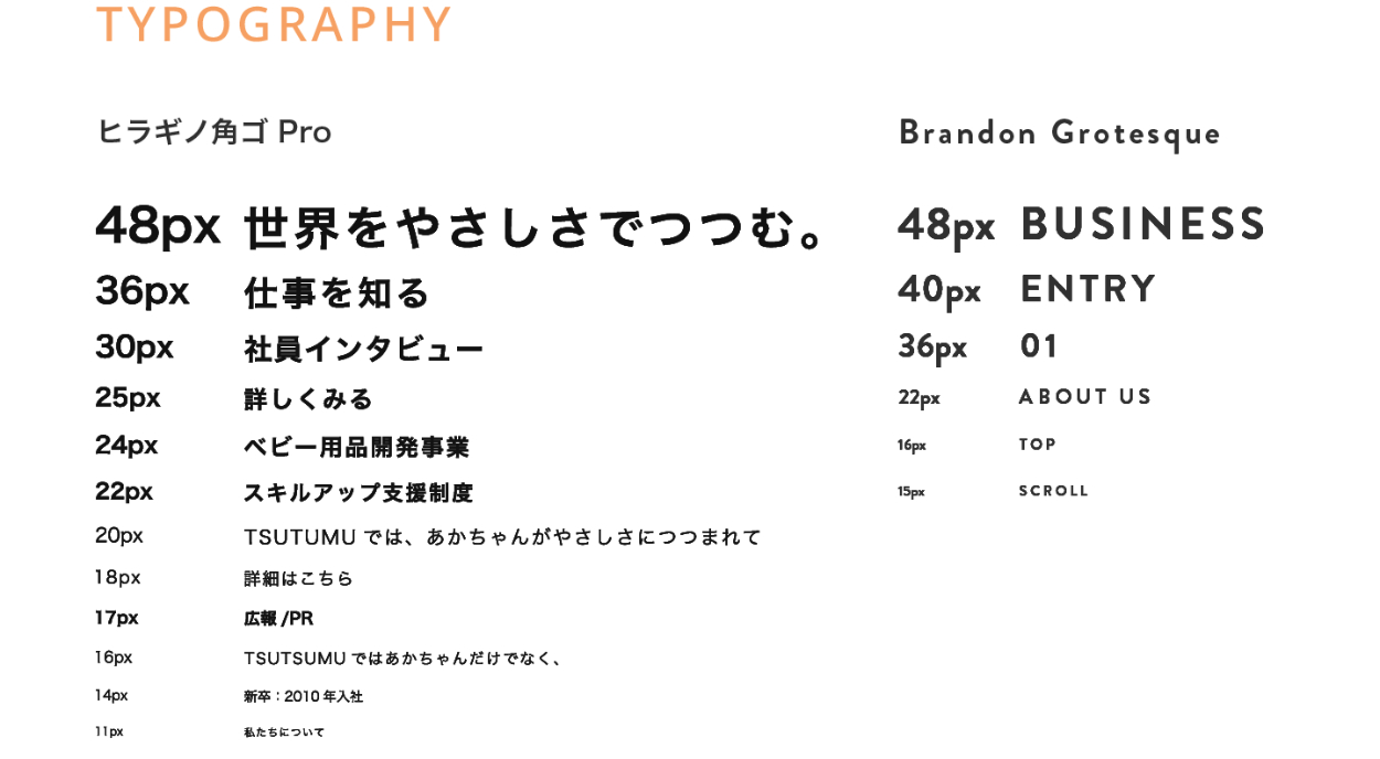 - 採用サイトのため、読みやすく、誠実さを表現できるようなゴシック体を選択しました。(和文フォント、欧文フォントどちらも丸みがありつつもしっかりとした印象のフォント)