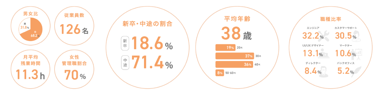 - 「子育てで転職活動に時間を十分に割けないし、復帰が転職だから色々不安もある…」を解決するために、平均年齢や男女比、残業時間など気になる情報がパッと見で分かる「数字を使った会社紹介」をコンテンツとして追加。