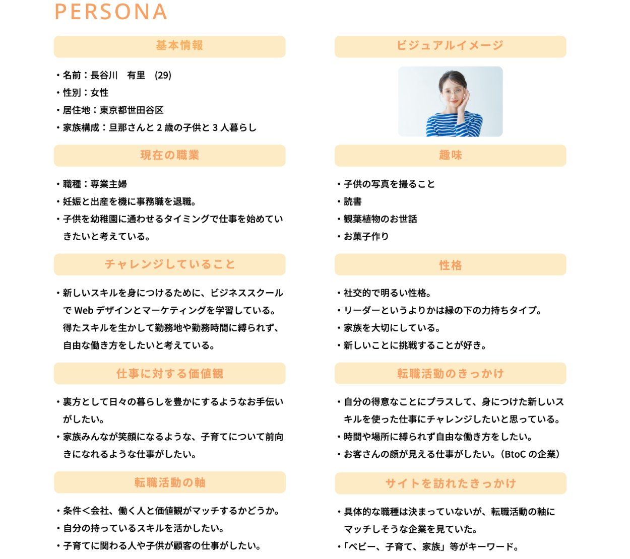 ペルソナの設定(ママさん、仕事復帰)から、