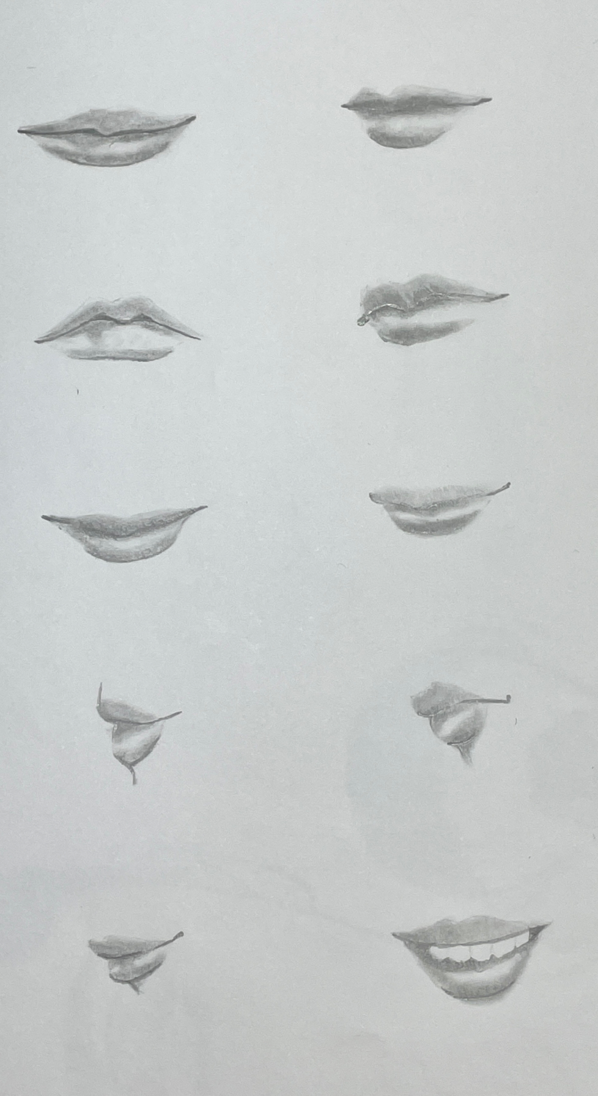 顔パーツ「口」 ai 専門学生 大まかな形はお手本をトレースして、影や線はお手本見ながら描きました。どこを濃くして、どこを薄くするかではっきり形が出てきて、質感も出せるのですごいと思いました。次描くときはトレースなしで頑張りたいです。