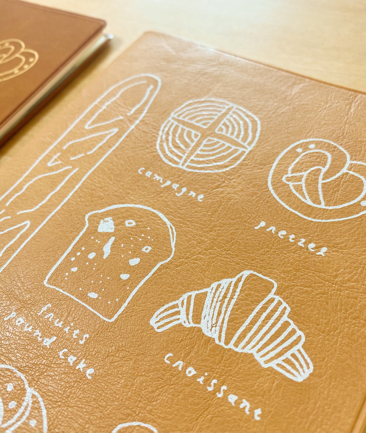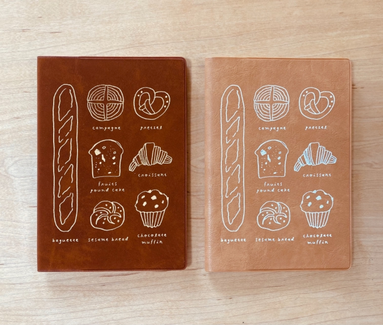 パンダイアリー hiroko kimura 企画デザイン OVERVIEW 商品 手帳 Monthly B6 Diary Bakery YEAR 2016 薄茶の生地を見た時に、色も質感もフランスパンようで美味しそうに感じたことから生まれたデザイン。茶色の生地はプレッツェルのようなイメージです。パンを手にした時の安堵感を出したくて、ゆるめのイラストを意識しました。