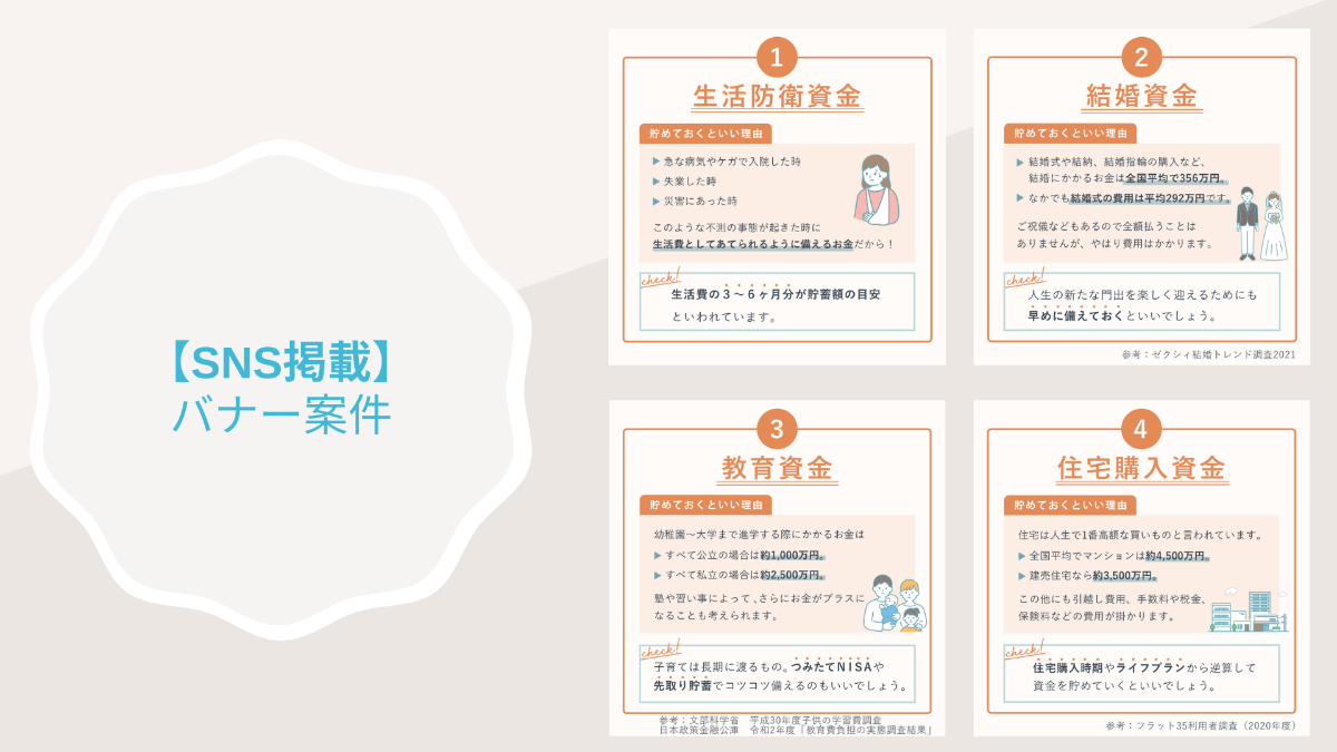 マネースクール・SHEmoney様のSNS(Instagram・Twitter)に掲載するバナー制作案件(2回目)です。
