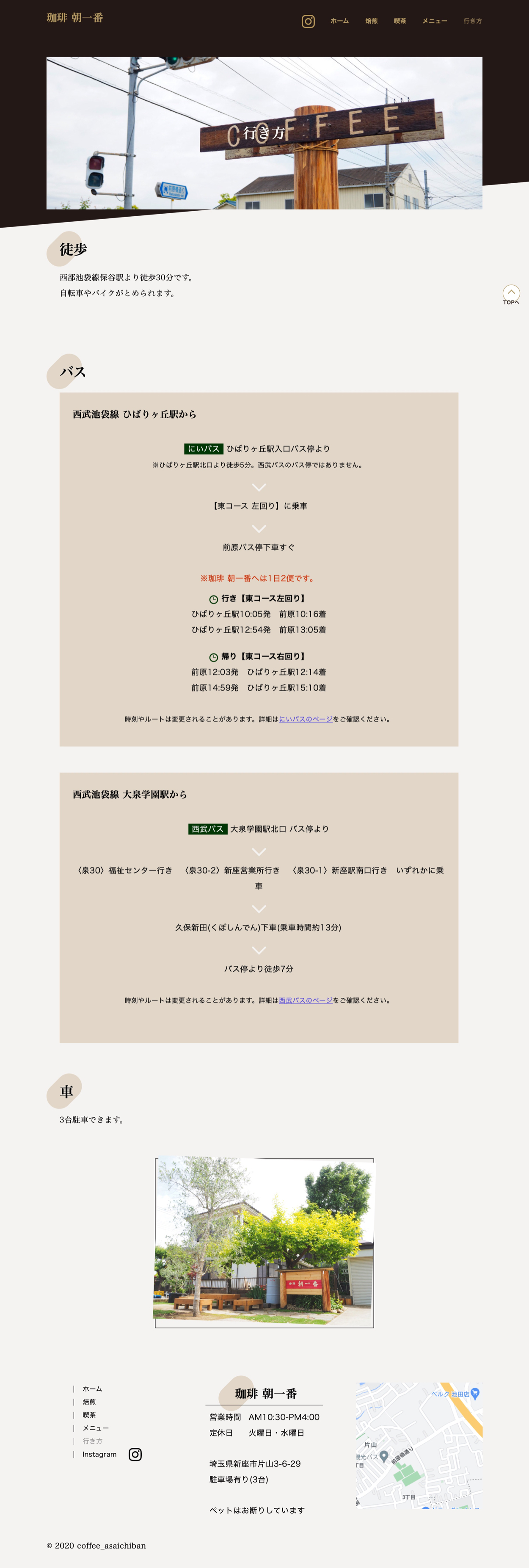 ・トップページ全体をひとつの流れとして捉え、最後に目的である来店を促す「行きかた」コンテンツを配置しました。