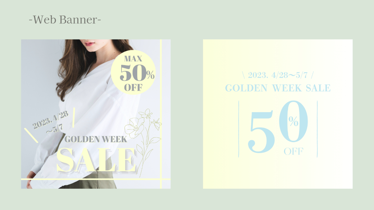 【課題】レディースアパレルECサイトのゴールデンウィークセール告知のバナー