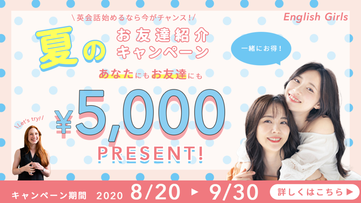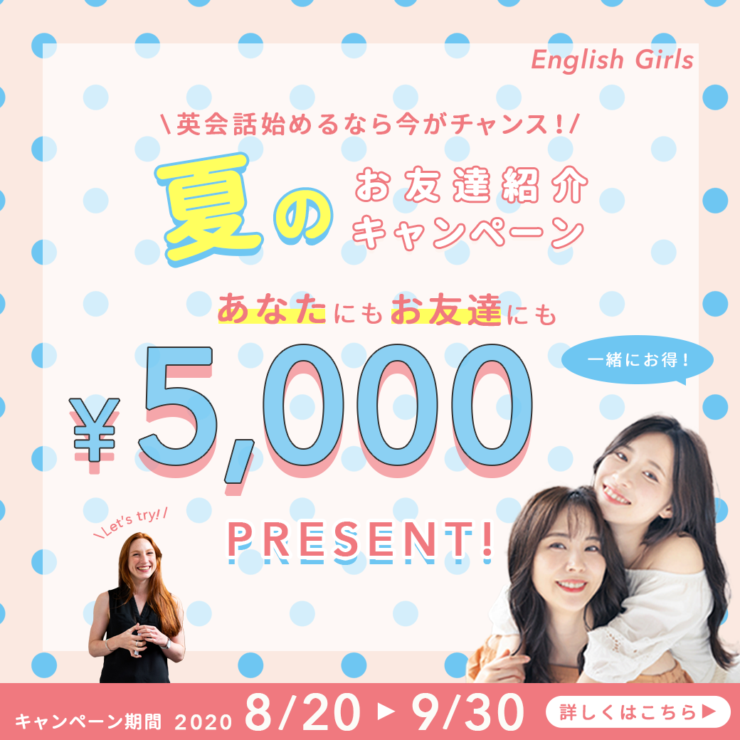 ①一緒にお得!②夏のお友達紹介キャンペーン③あなたもお友達にも5,000円プレゼント④期間:2020年8月20日〜9月30日
