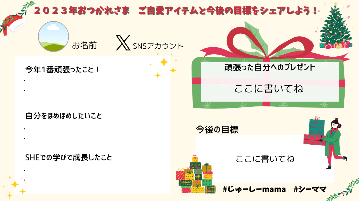 タイトル:2023年おつかれさま ご自愛アイテムと今後の目標をシェアしよう!