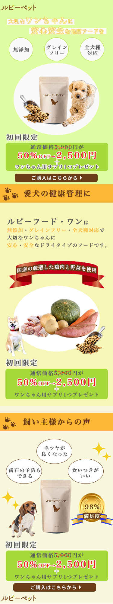 制作目的:ドッグフードの販売、及びキャンペーンの告知、購入をしていただくことを目 的としたLP