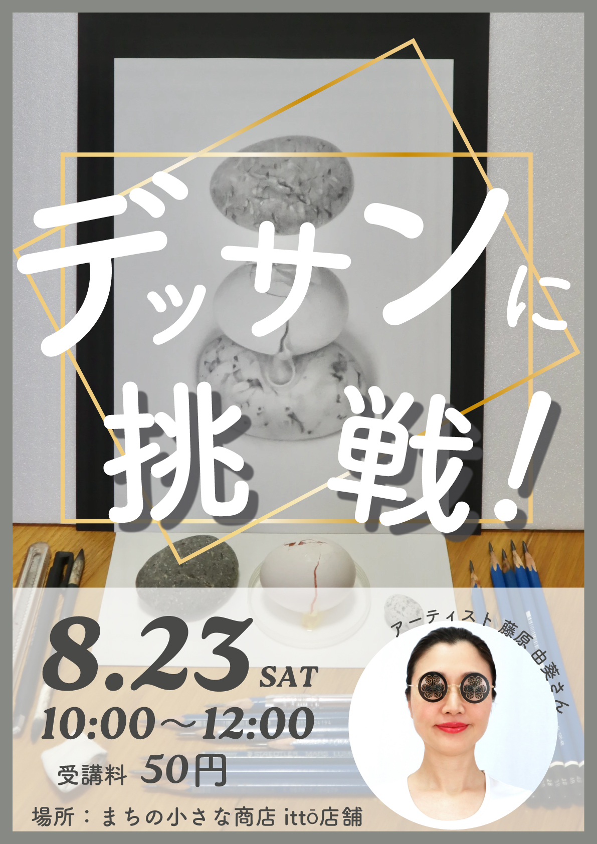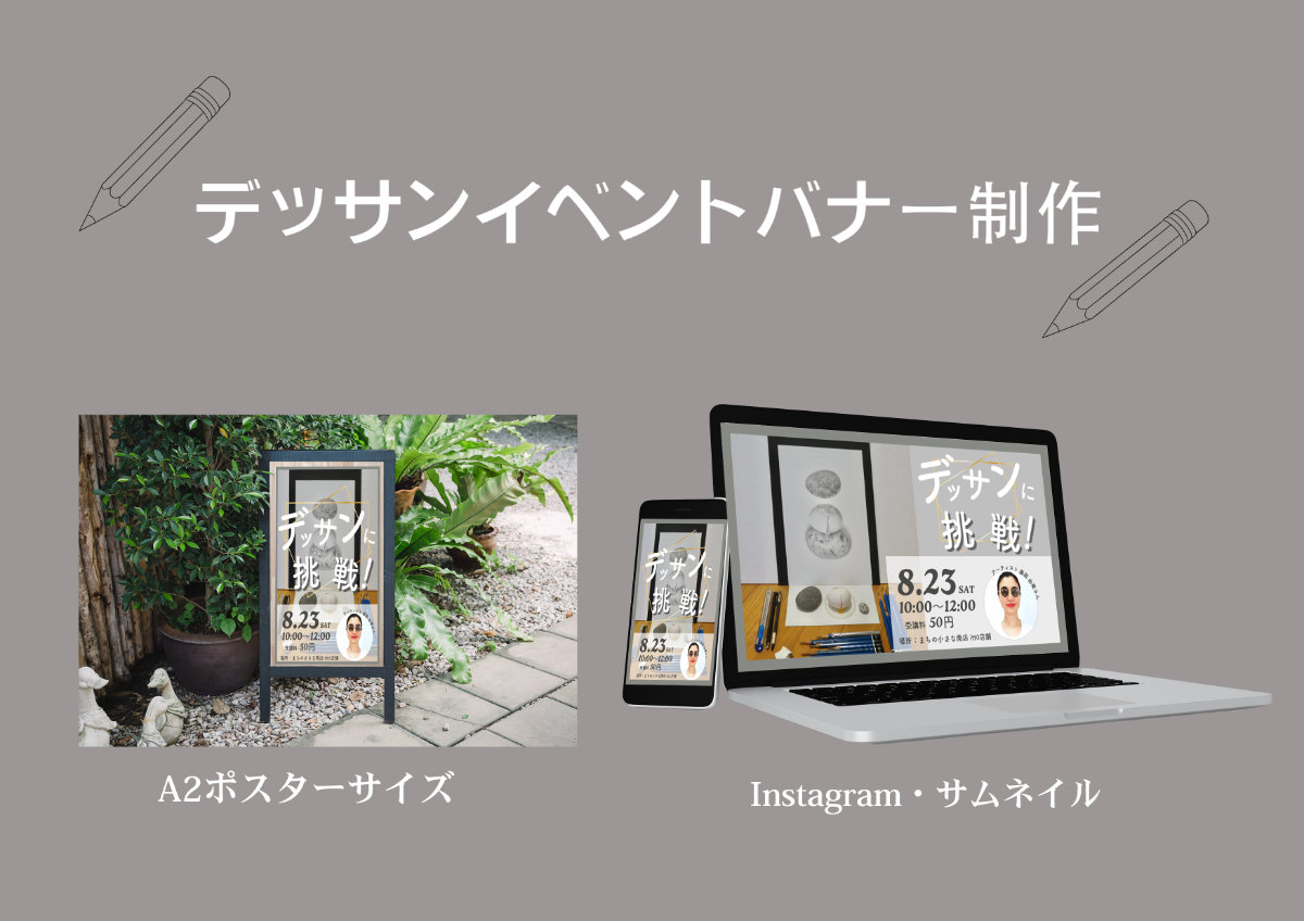 ・タイトルの「デッサンに挑戦!」は大きく配置してインパクトを鉛筆のモノトーンにゴールドのラインでアクセントをつけました。