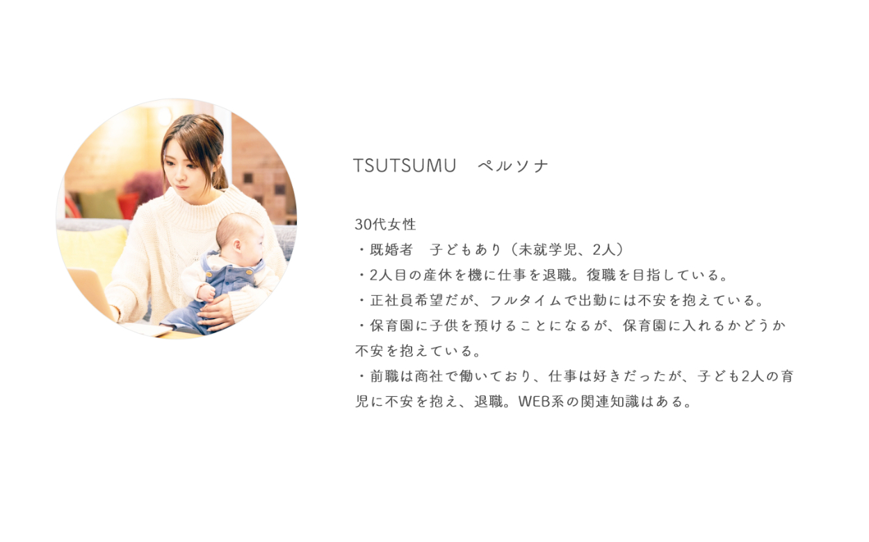 との要望があったため、まずはTSUTSUMUのペルソナを以下のように考えました。