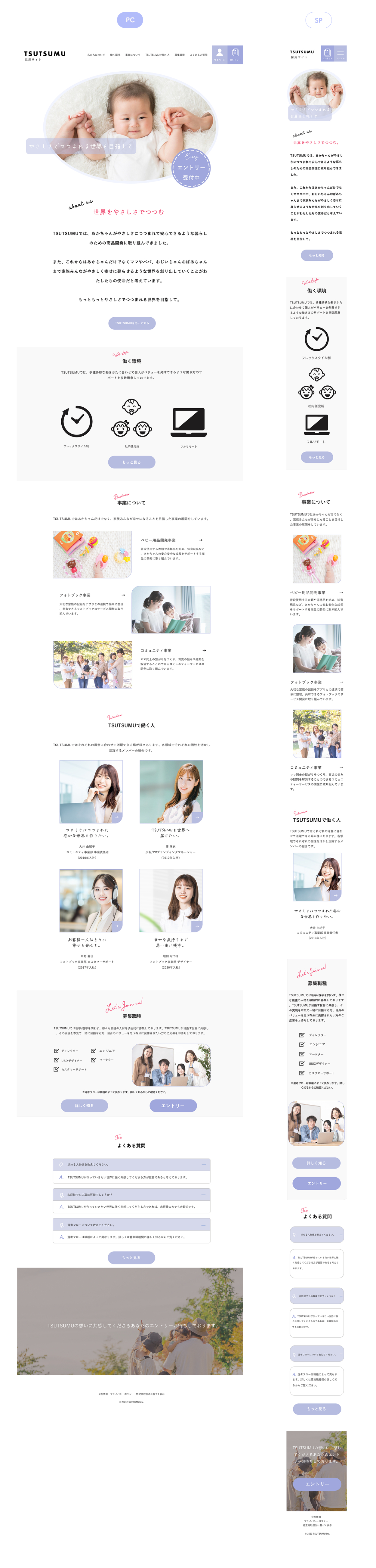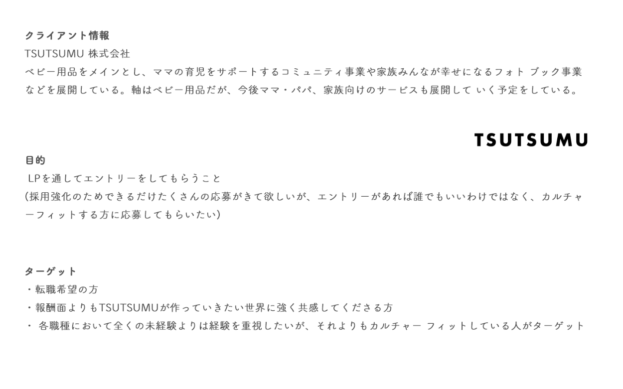 採用サイトであるということを意識し、TSUTSUMUの世界観だけでなく、きちんと感やサイトを一見しただけで視覚的に伝えたいことを伝えられるように工夫しました。