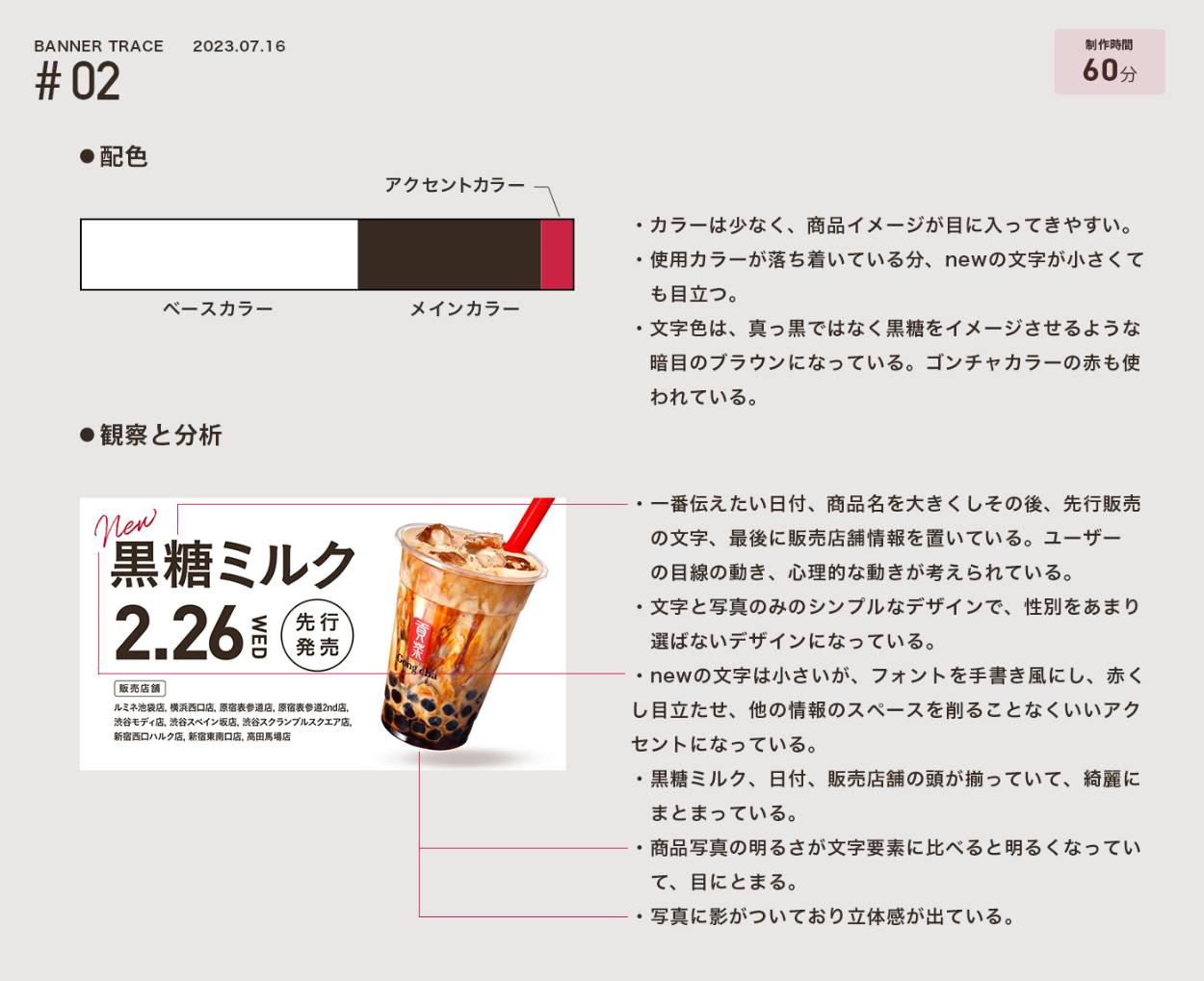 ①制 作 時 間 :トレース時間 60分 ▶︎ 分析・観察資料 120分 ▶︎ ブラッシュアップ 120分