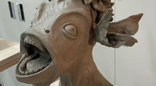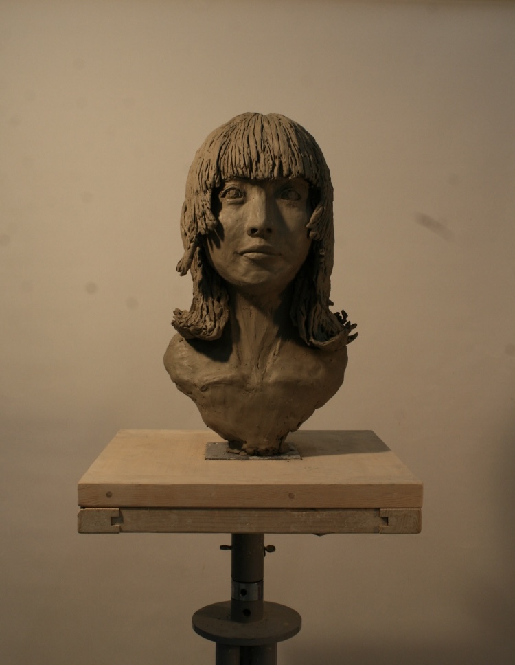 水粘土にて彫塑しました。