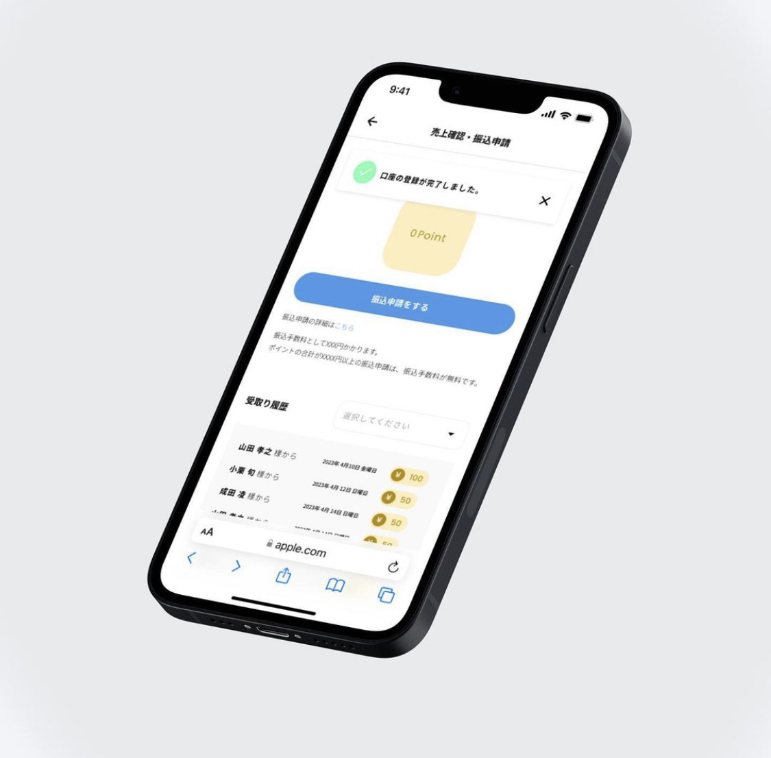 受け取る側が金額を設定し、カードで支払うと一通受け取れます。
