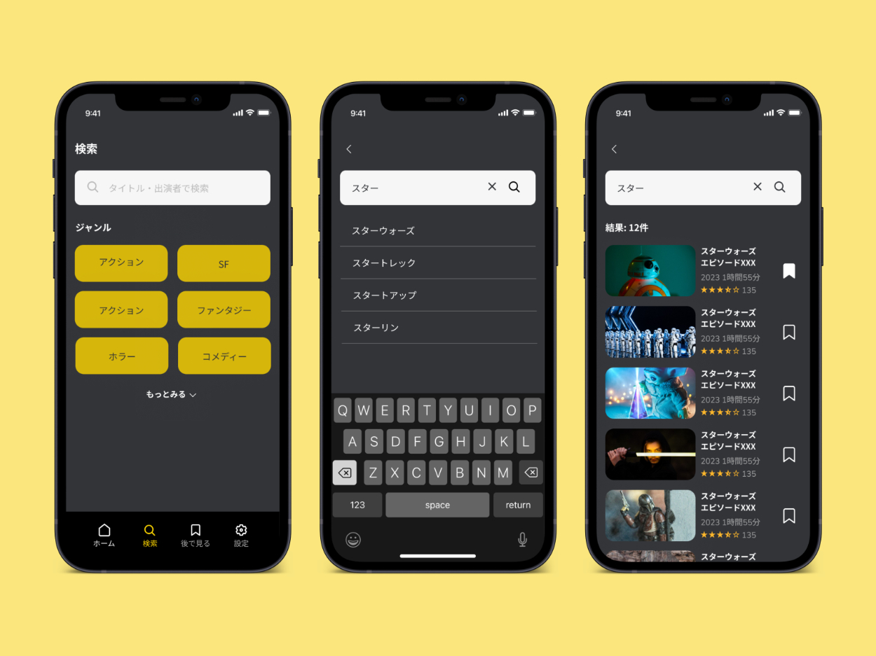 ・映画のサムネイルを映えさせたいので、極力色は使わず、文字は少なめにしました。