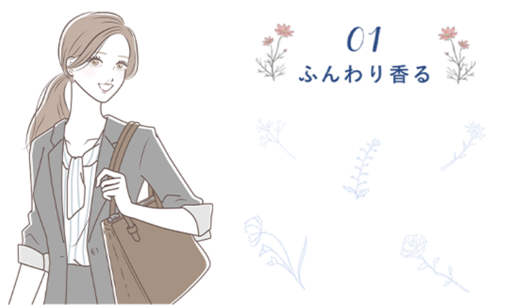 「少しでも香りを楽しむ」という方向性で考えていたため、優しく香る花のイラストをあしらい、シーン別に使用方法が想像しやすいイラストを選びました。