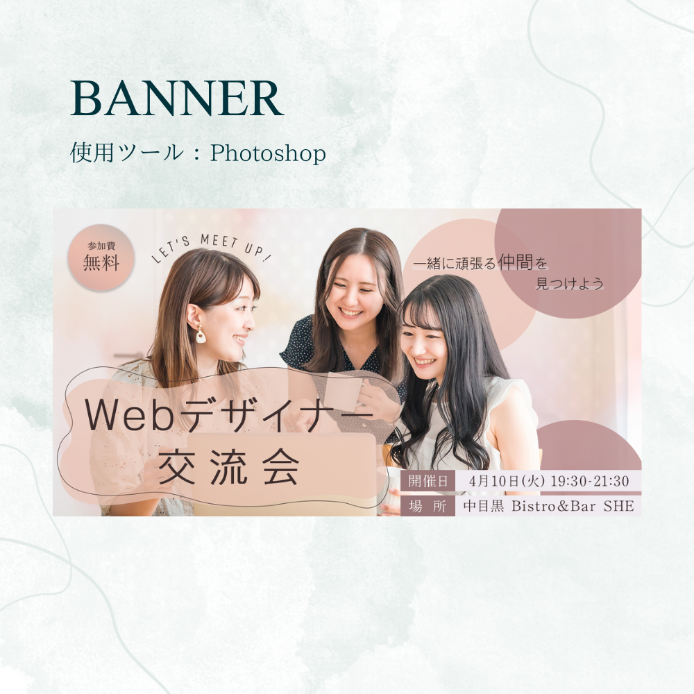 ・一眼で交流会のバナーであること、参加してもらえるよう温かみのある雰囲気を意識しました。