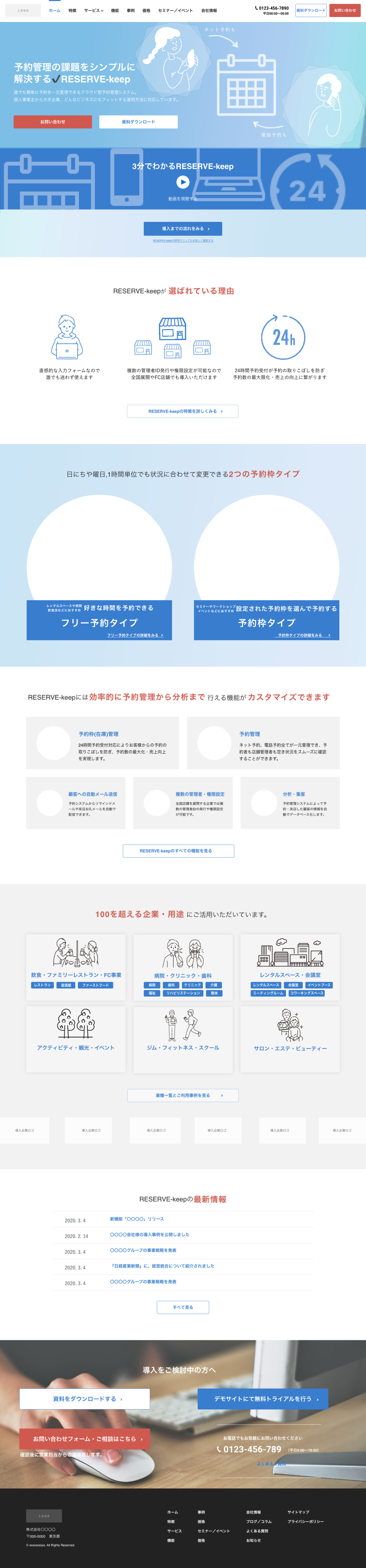 架空サイトデザイン / 予約管理システムの製品サイト