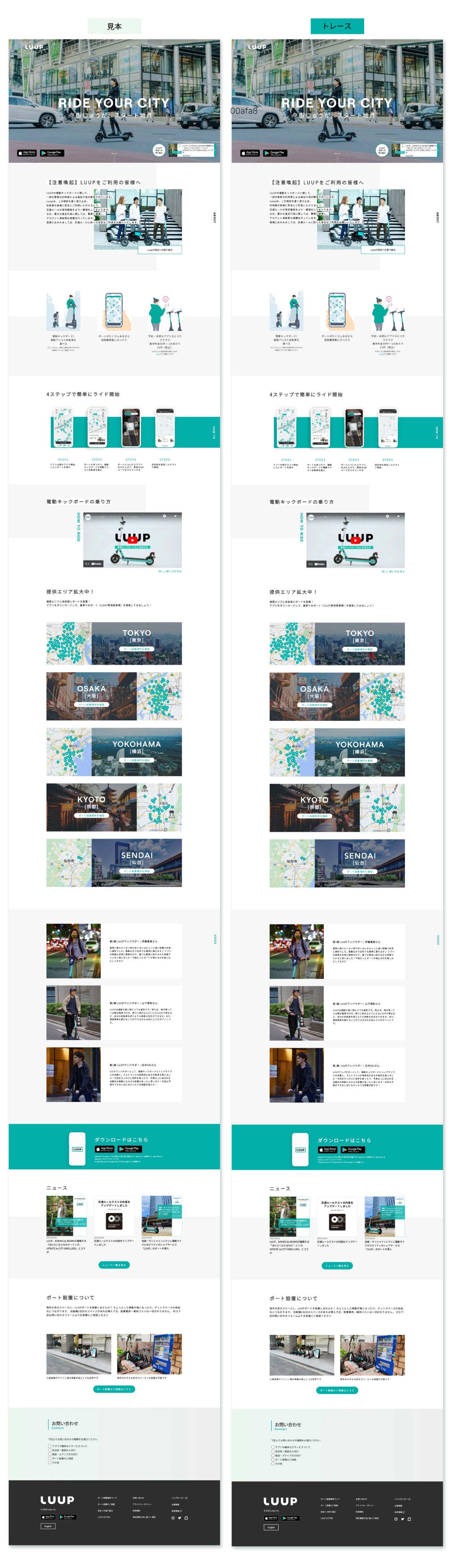 株式会社Luupが提供している「マイクロモビリティ」のLPサイトのトレースをしました。