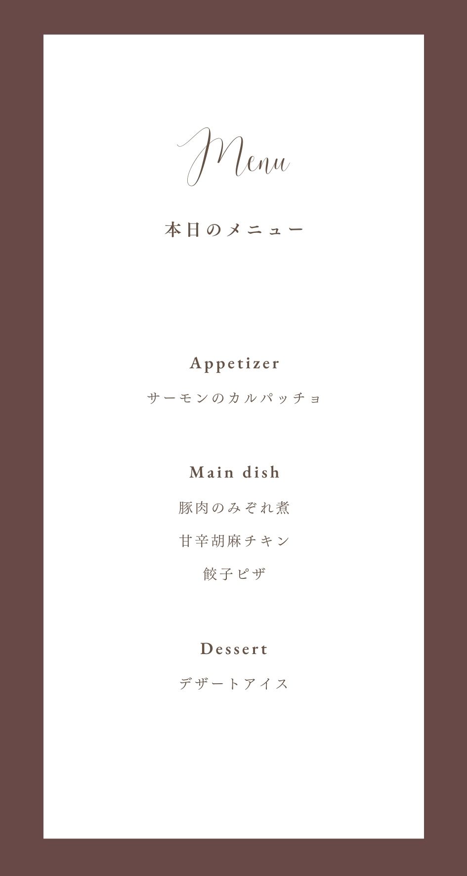 ・浄酎の試飲会でペアリングするフードアナリスト岡本隆子さんの用意するお料理を参加者に親しんでもらうためメニュー表を作成する