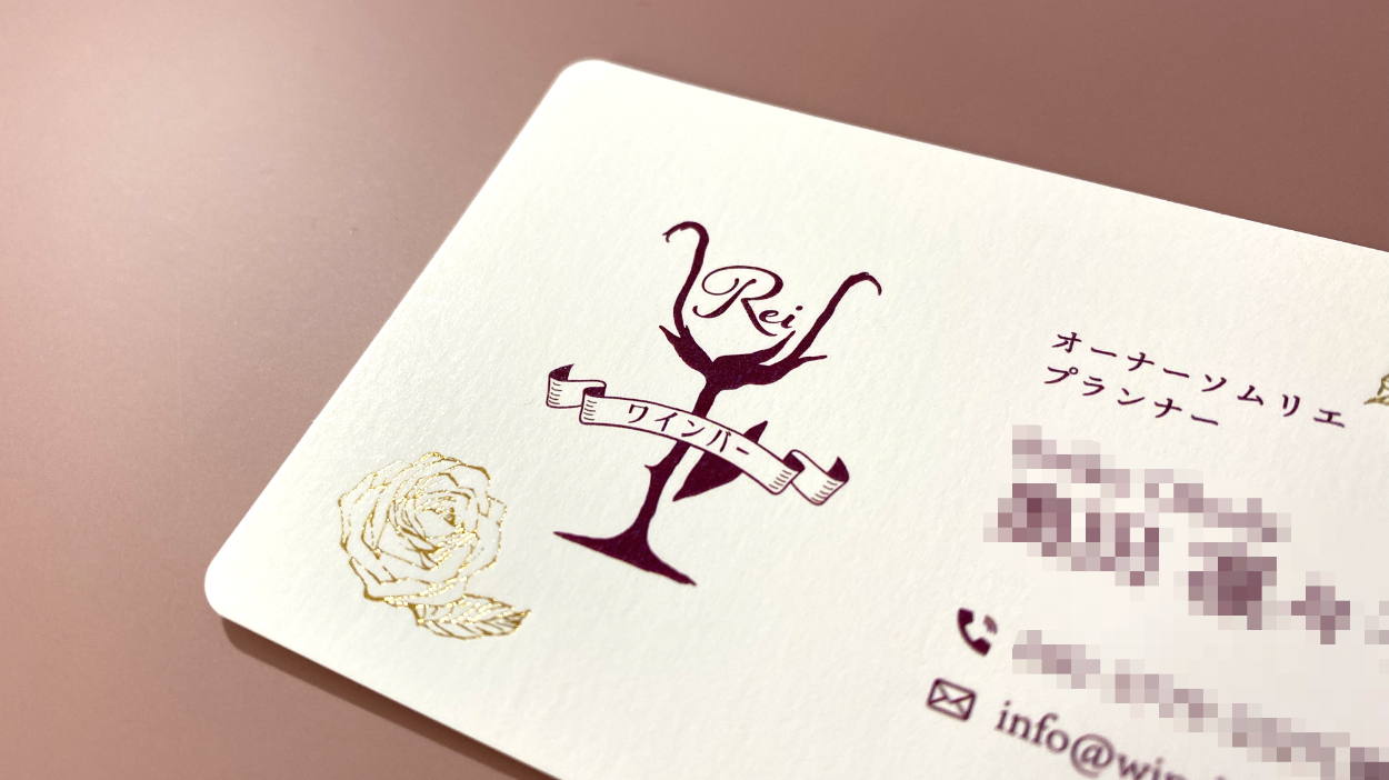 名刺デザインはシンプルなレイアウトにし、金箔押しを施し上品なものにしました。