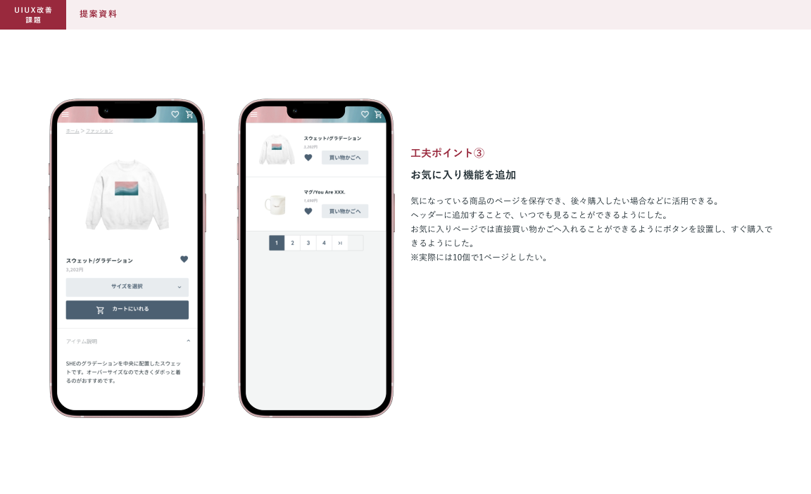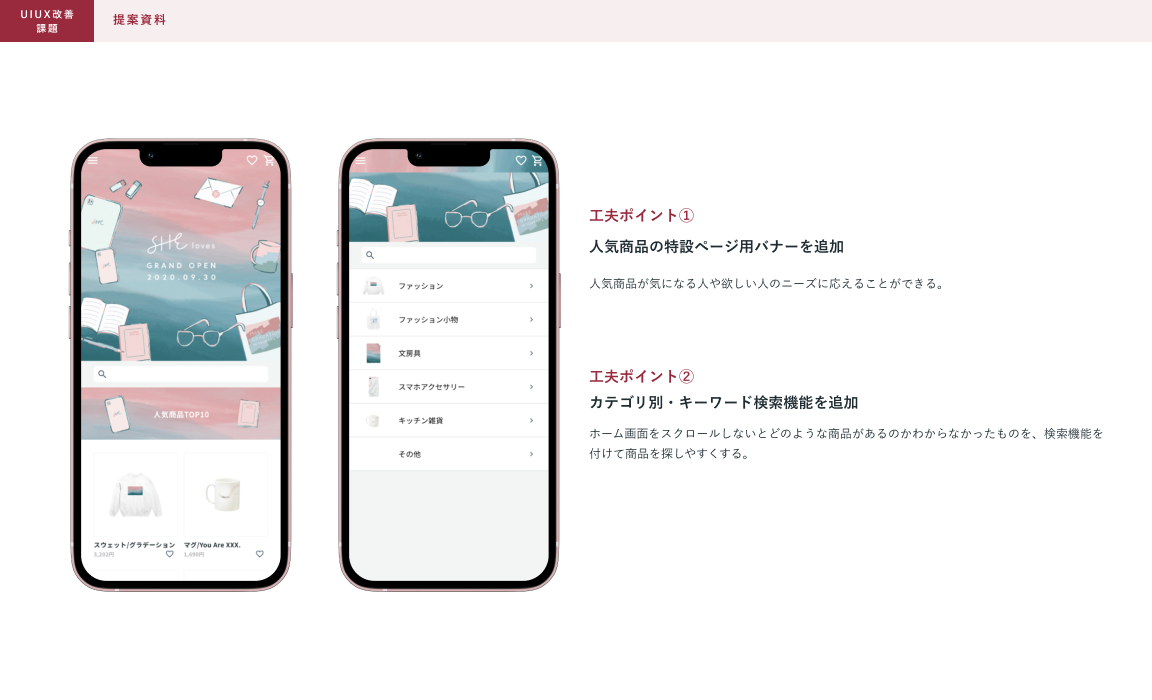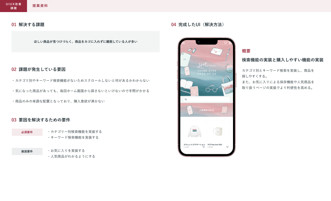 SHElikes MULTI CREATOR COURSEの課題で、架空ECサイトの改善提案に取り組みました。(期間:2週間)