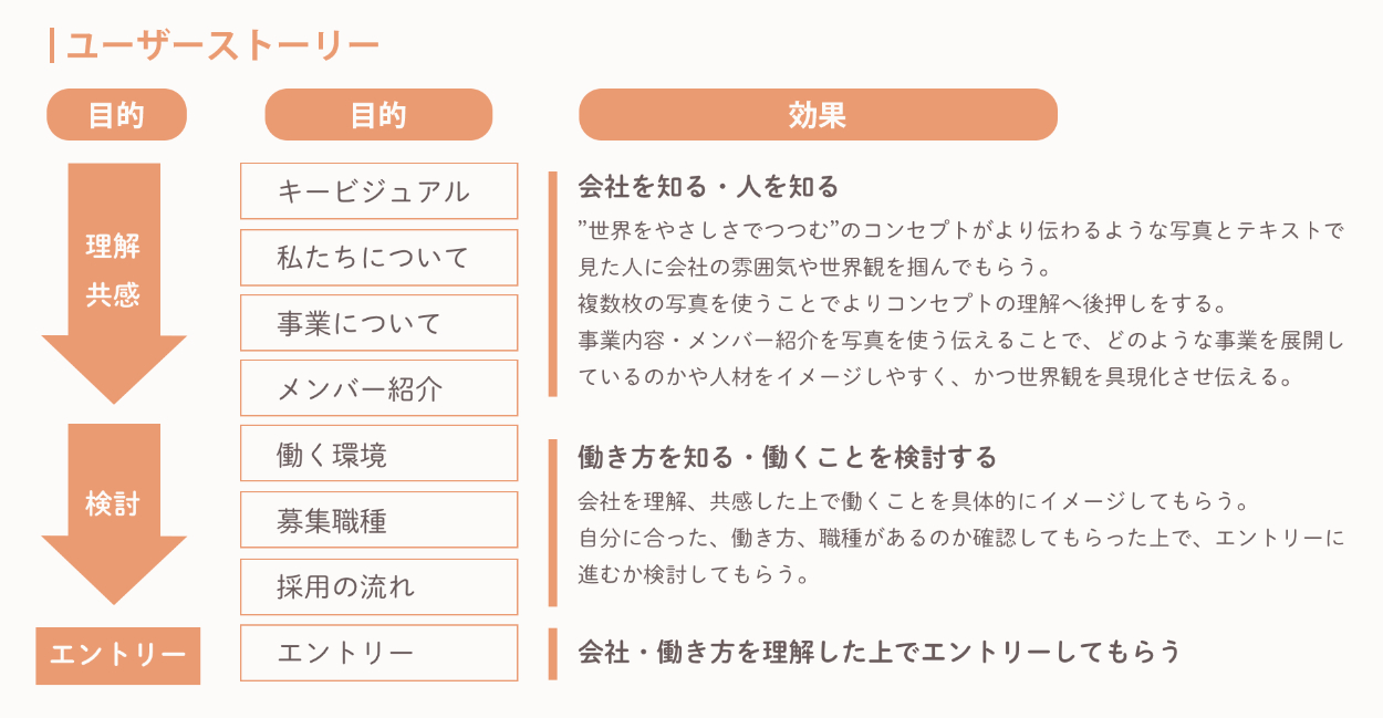 クライアントが持つ世界観やイメージを伝えつつ、見た人に伝えたいことを的確に伝えていくために、情報設計にこだわり制作しました。ペルソナを立て、1つ1つの要素の配置やあしらいに意味を持たせながらデザインに落とし込みました。