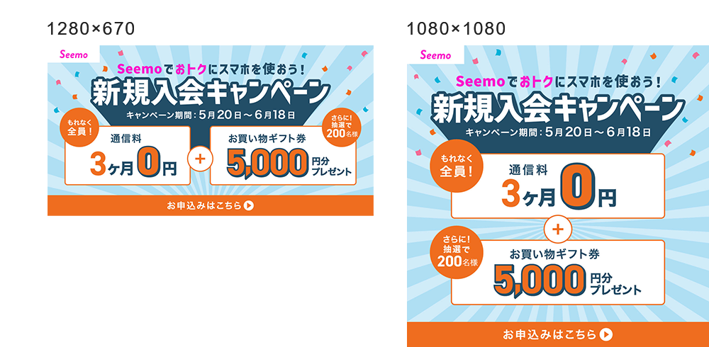 - ひと目でサービス内容とお得感がわかるように「Seemoでおトクにスマホを使おう」というダイレクトなコピーを考え配置しました。