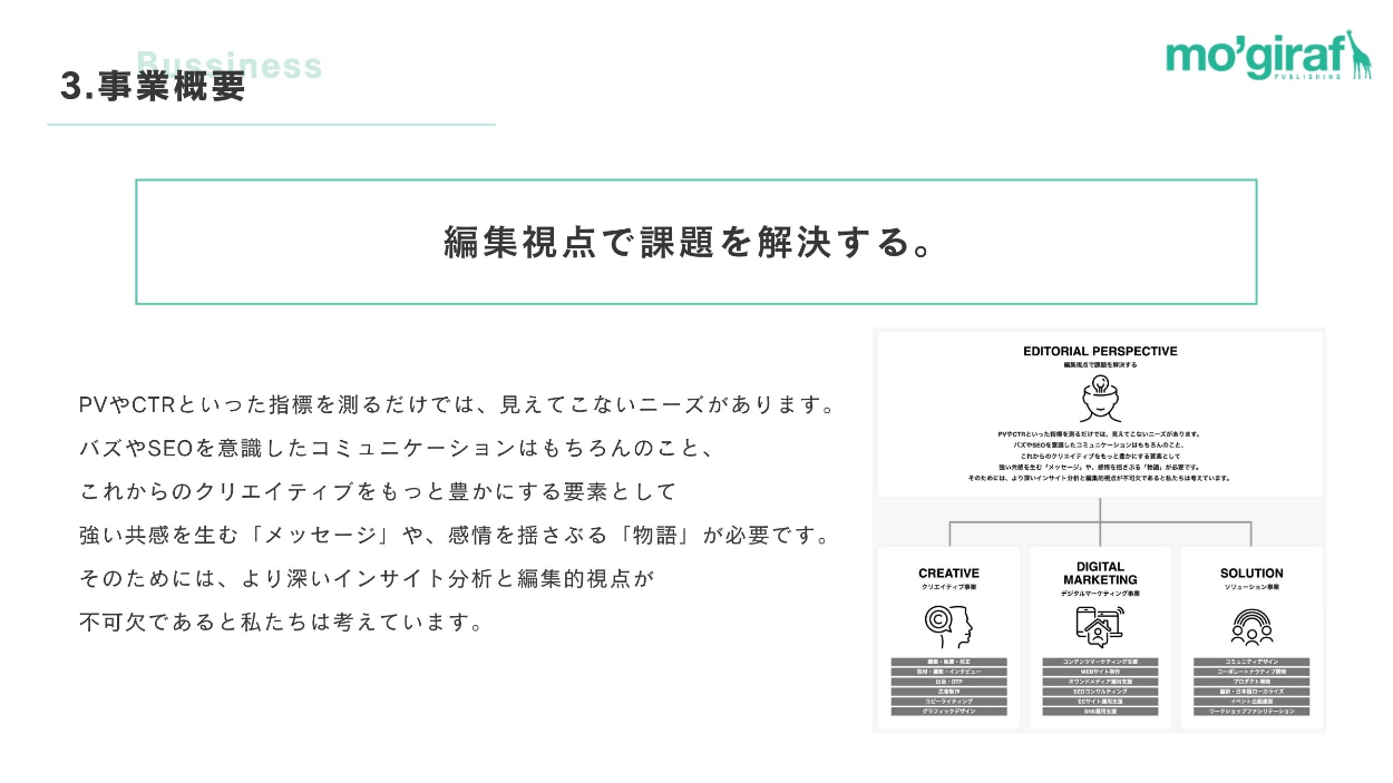 ・文字が読みやすいよう、文章量が多い部分を左寄せにし、より整った資料に仕上げました。