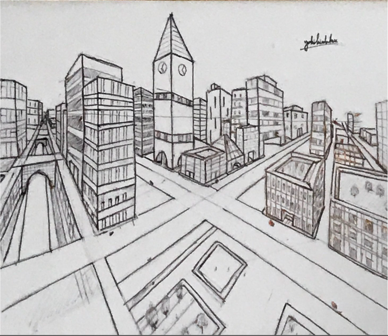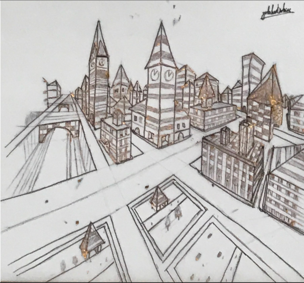 都市の景観が好きなので、デッサンで描いてみました。趣味です。