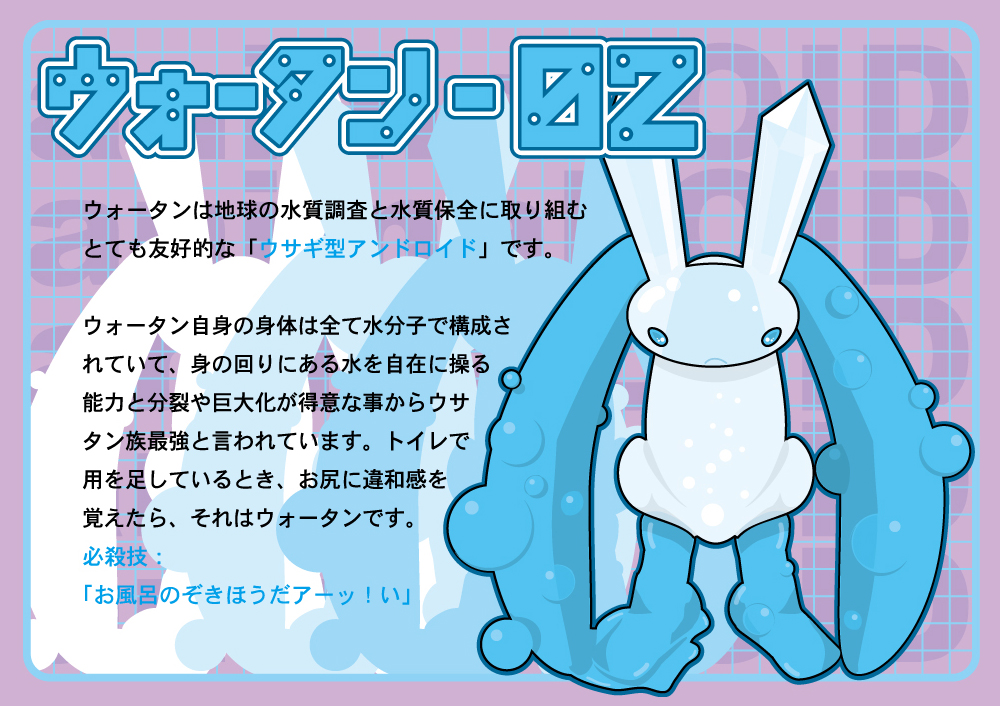 ベースのデザインに加えて、マンガやゲームにあるような属性とそれぞれの個性を追加した全5キャラクターで構成しました。