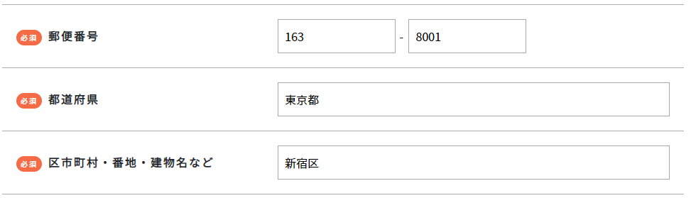 お問い合わせフォームの郵便番号を入力すると、自動で都道府県と市区町村が呼び出されます。