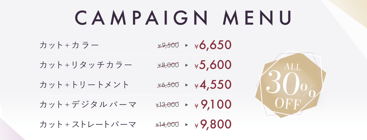 通常価格には斜線を引き、キャンペーン価格はジャンプ率をつけて大きくしました。キャンペーン価格の文字色は浮かないような落ち着いたボルドーを使用しました。