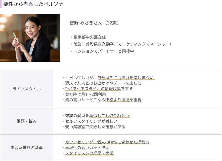 依頼内容を基に、ペルソナとユーザーストーリーを考えました。