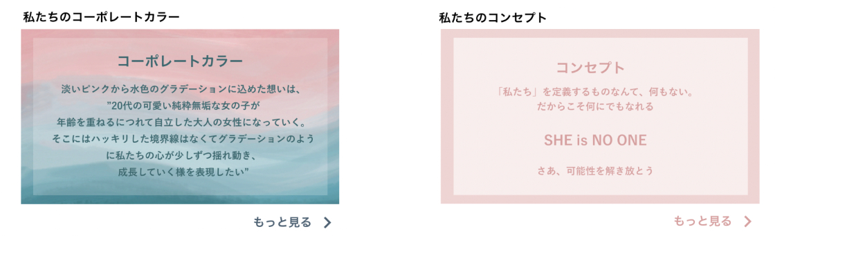 ・SHEが、CIに込めた想いを伝える特集項目を作ることで、SHEのことを深く知っていただき、グッズの魅力を高めている。