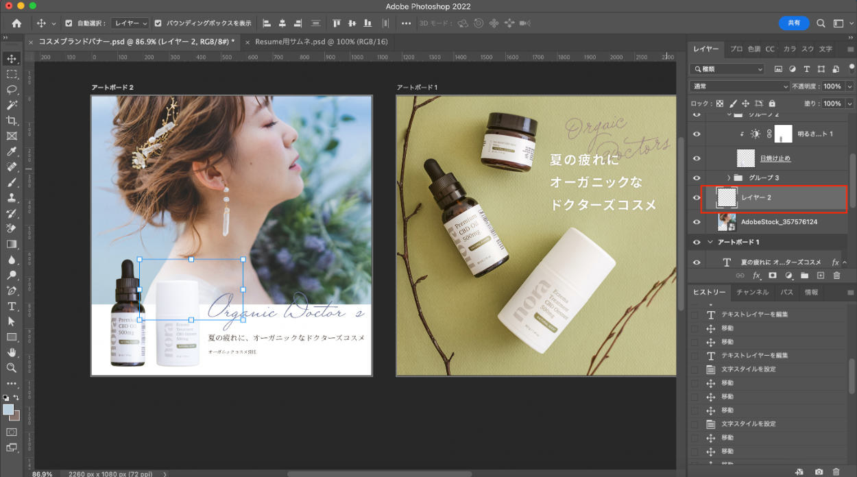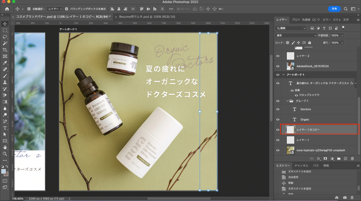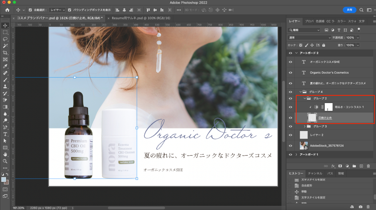 バナー制作の実践課題として、架空のコスメブランドのSNSバナーを制作しました。【制作期間:1日 / 制作時間:3時間 / ツール: Photoshop】