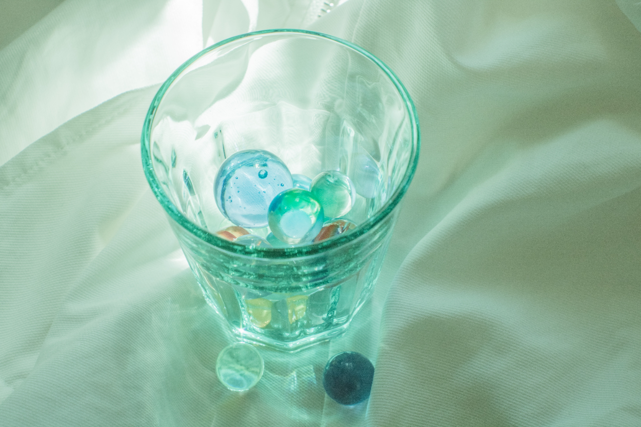 撮影 eu OVERVIEW 使用機材:Canon kissx 8i、オールドレンズPentax Super Takumar 35mm F2 YEAR 2019 自宅にて、ビー玉とガラスの儚さと輝きを表現したいと思い撮影。