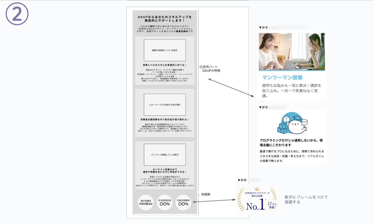 職業訓練校の課題として作成しました。 Webマーケティング学習の職業訓練サービスのLPを改善することを想定し要件定義・ワイヤーフレームを作成しています。