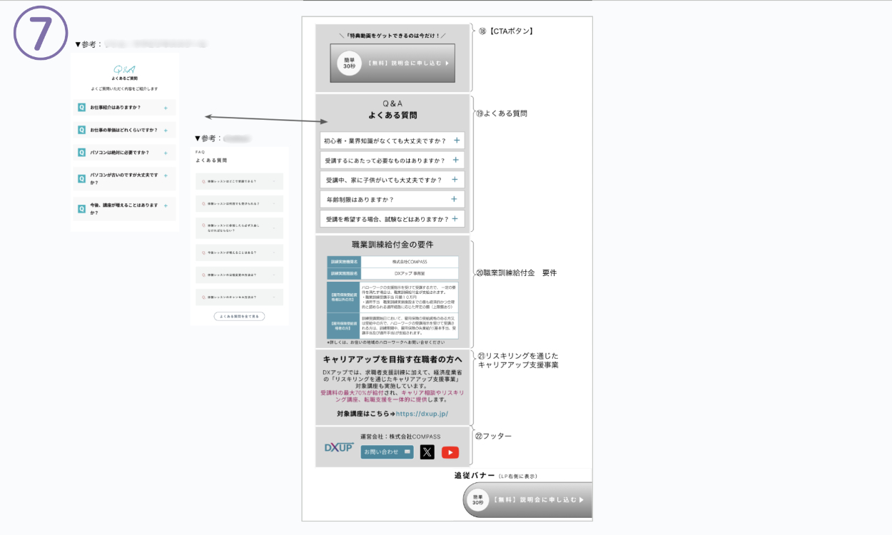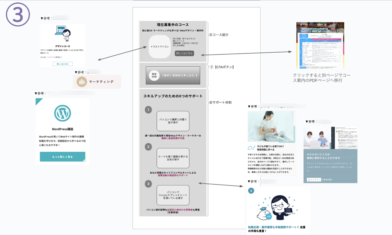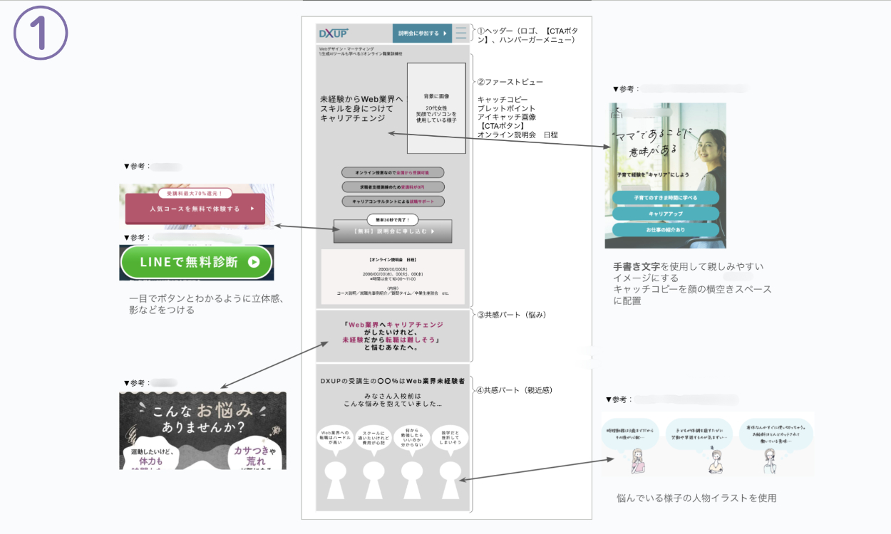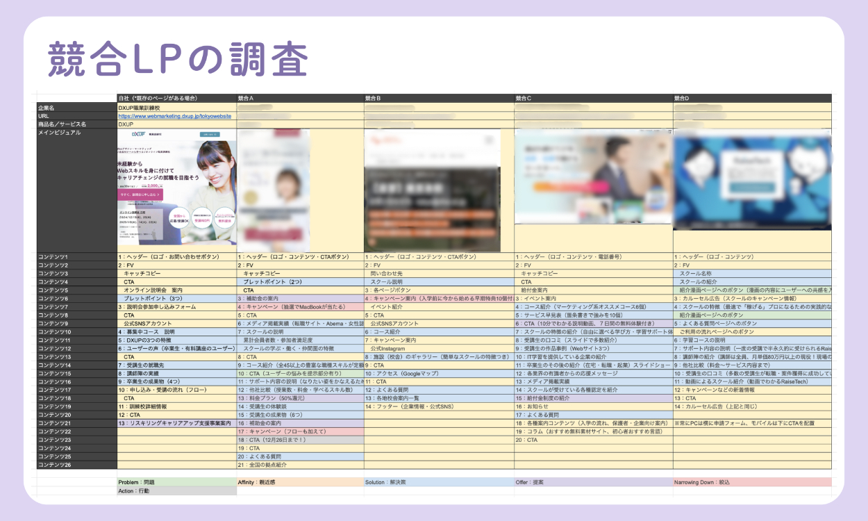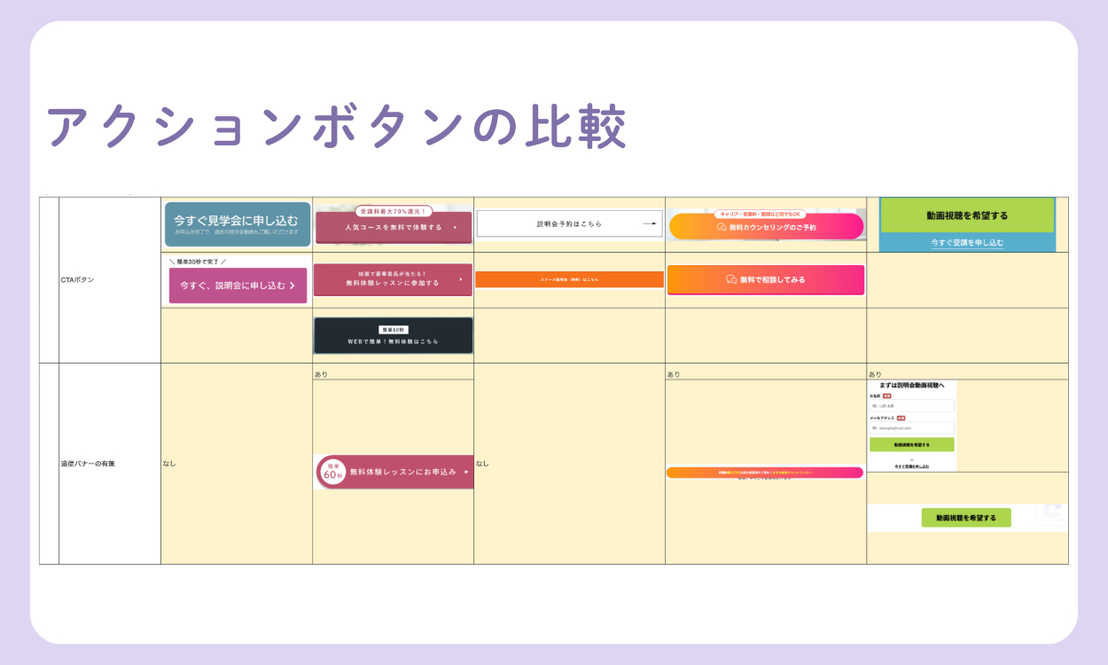 ②競合LPの調査、コンテンツ・CTAボタンの比較
