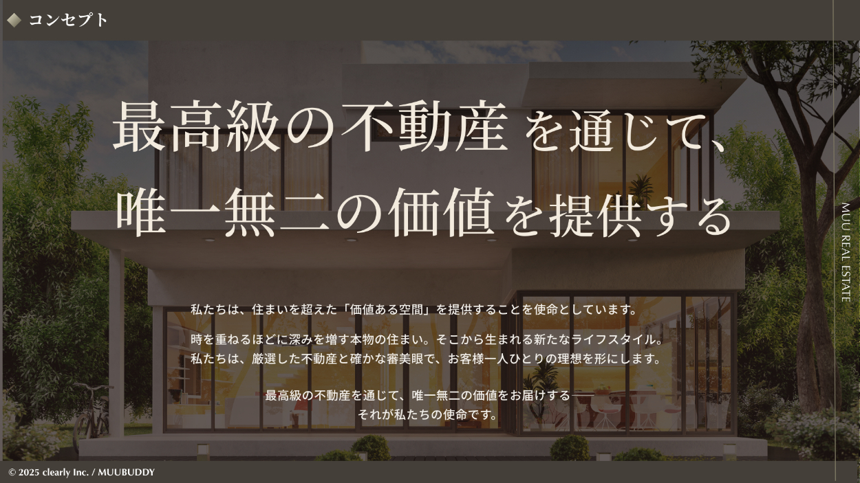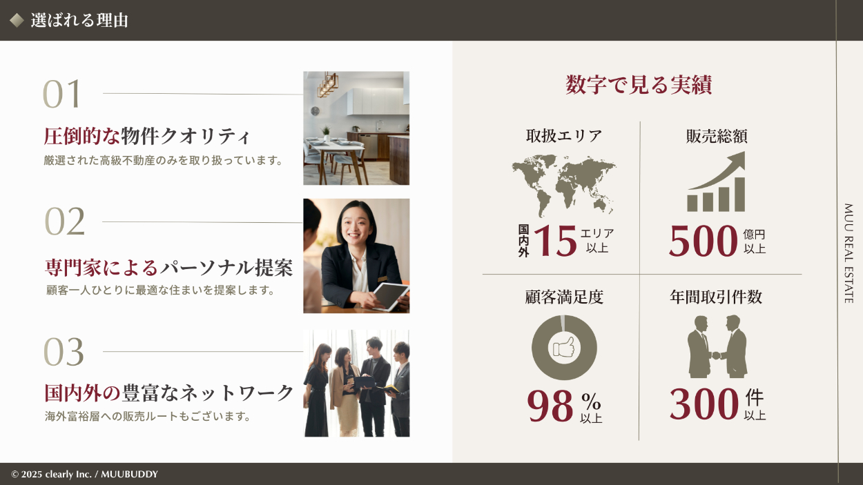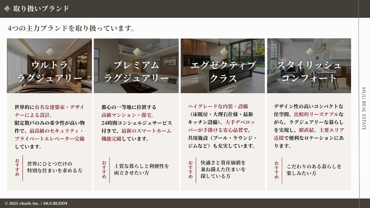 資料の目的・用途 :会社のブランド価値を伝え、高級不動産の購入の機会を創出