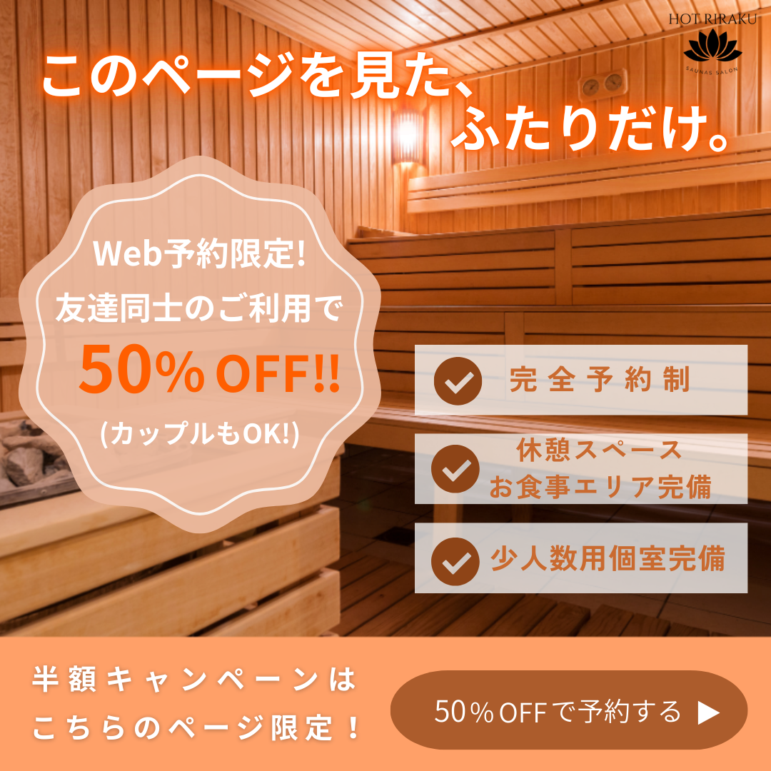 サウナサロンバナー 藍菜りさ webデザイナー OVERVIEW webデザインスクール「Her Tech」架空案件にて作成。 サウナサロンなので、あたたかさや柔らかさを重視しました。「ふたりで利用すると半額」「このページから予約限定」を強調したかったので、キャッチコピー、キャンペーン内容がしっかりと目にとまるようなデザインにしました。