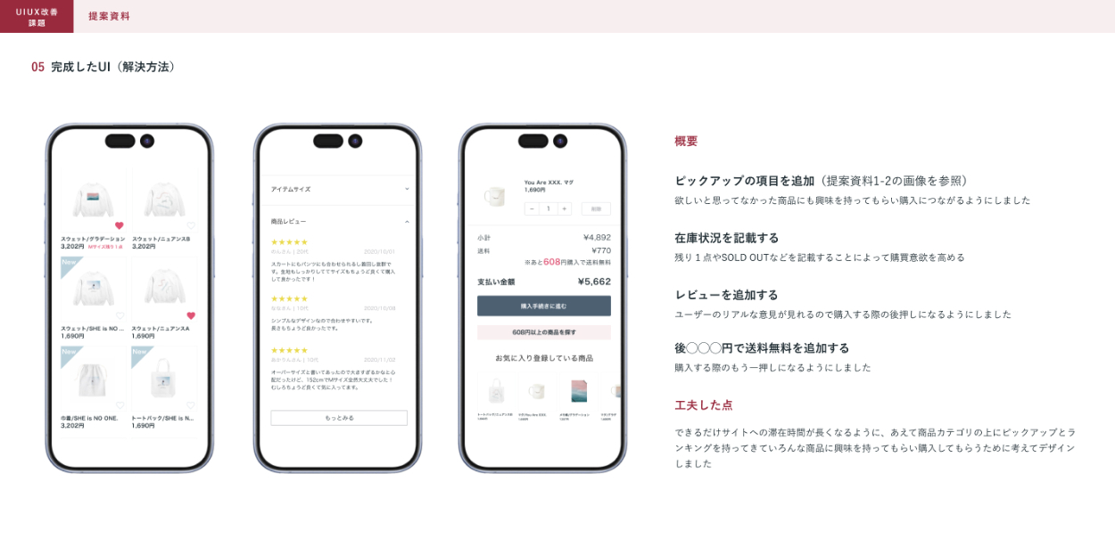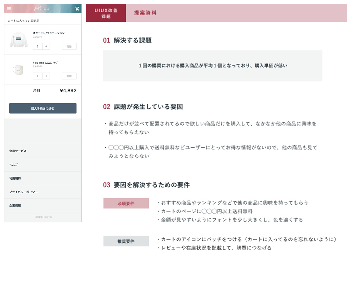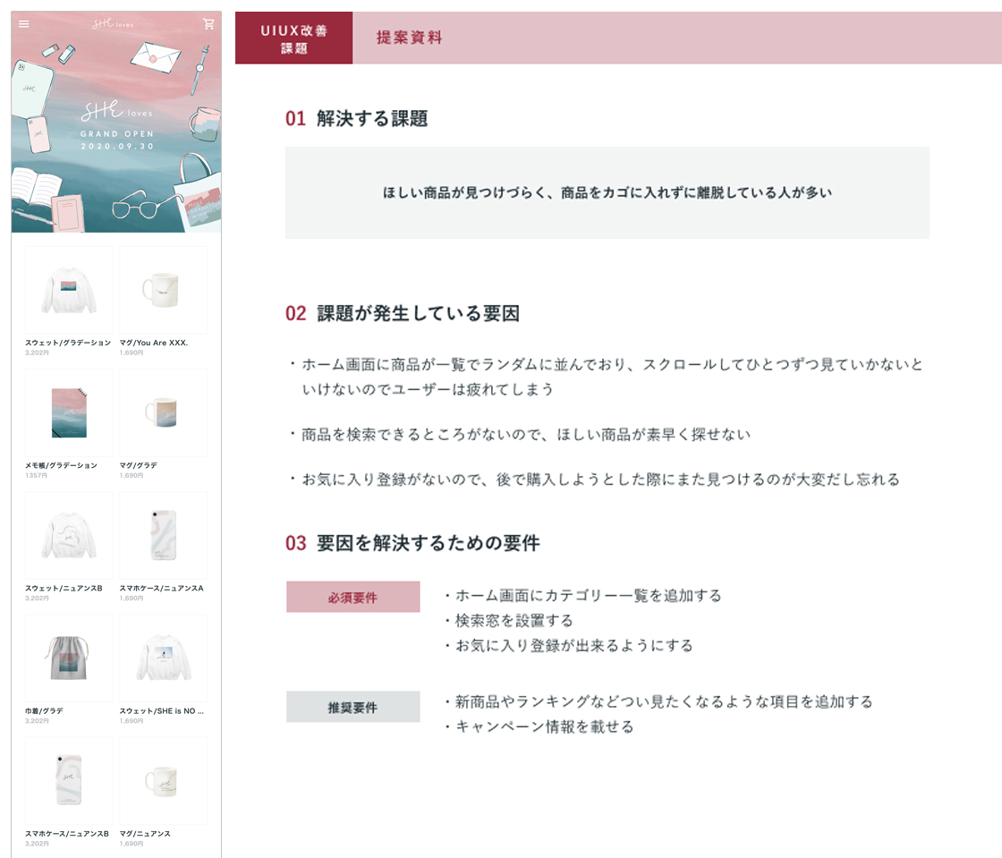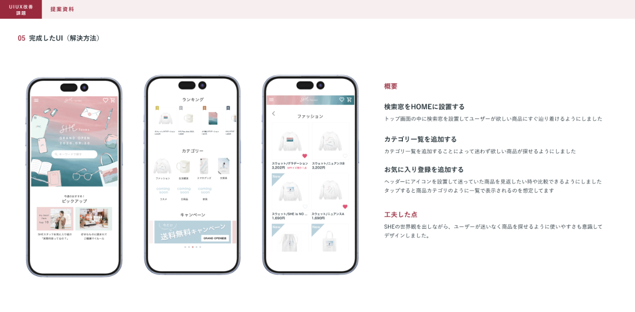 SHElikes MULTI CREATOR COURSEの課題でUIUX改善に取り組みました。架空のクライアントからの依頼内容をもとに実践形式で、目的に沿ったUIUX改善を行いました。