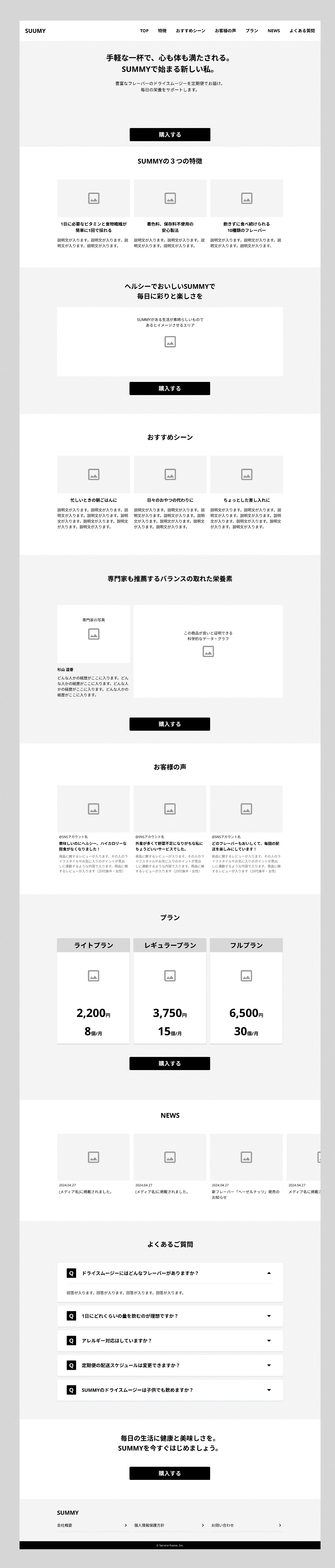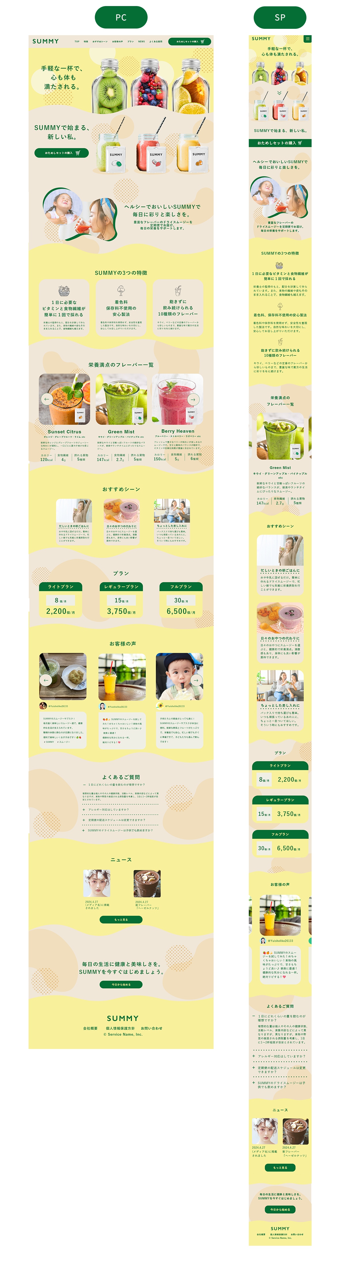 架空クライアント様からの依頼という設定で、渡されたPC版ワイヤーフレームを元に、PC版とSP版のデザインカンプを制作しました。