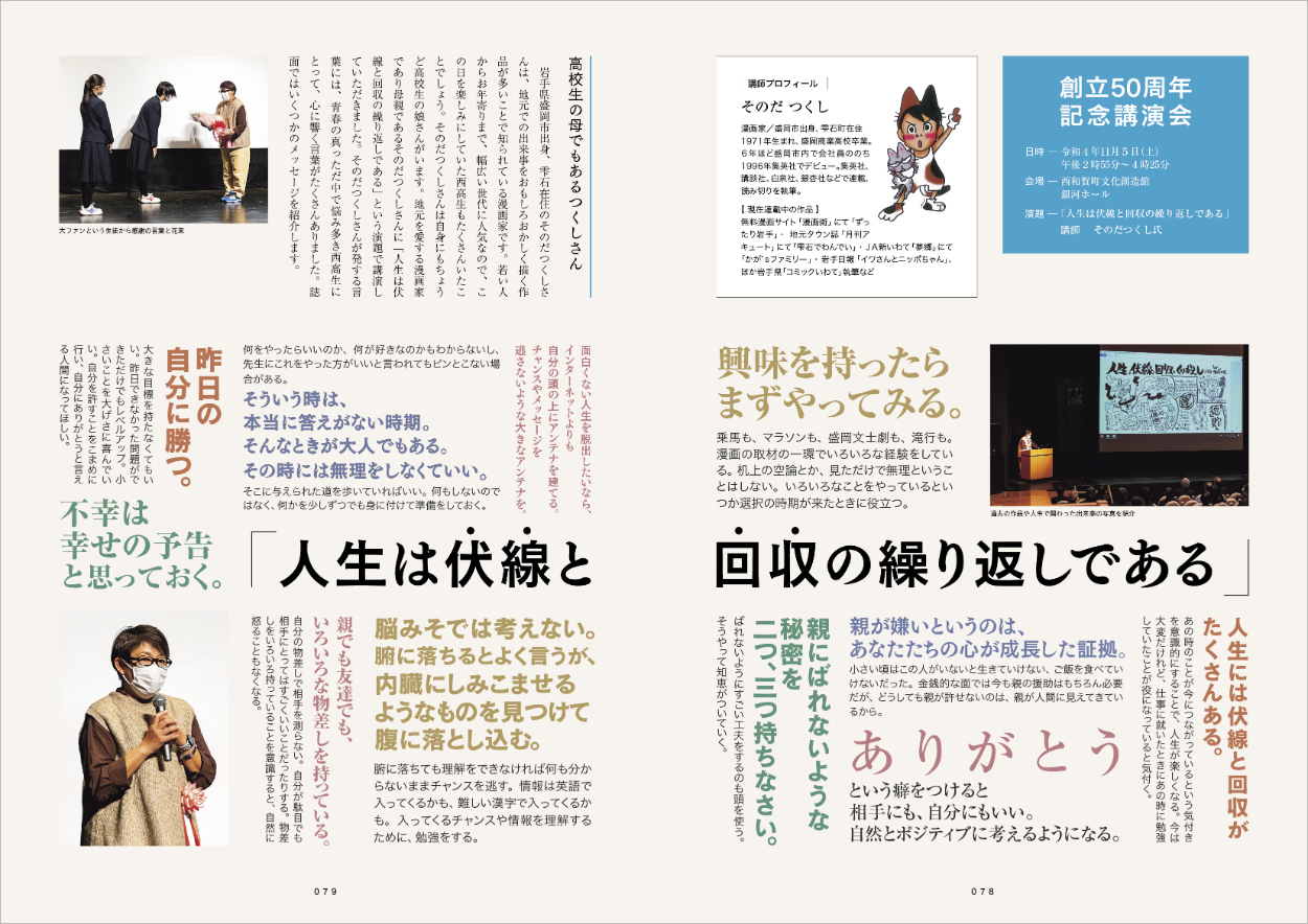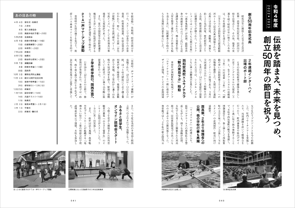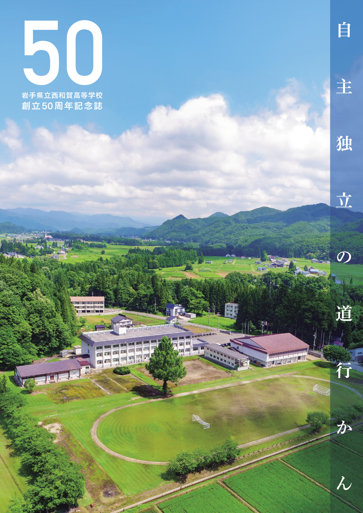 緑豊かな環境と高校のイメージカラーである水色を基調に、未来を感じさせるさわやかな表紙をデザインしました。力強い構図と太めのタイポグラフィで、生徒たちの成長やたくましさを表現しています。(人物の顔はポートフォリオ用にぼかしています)