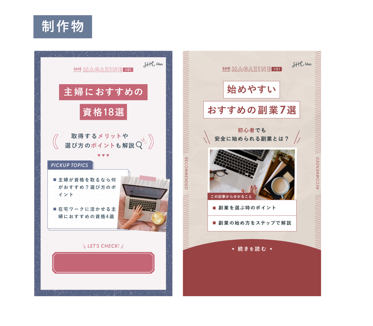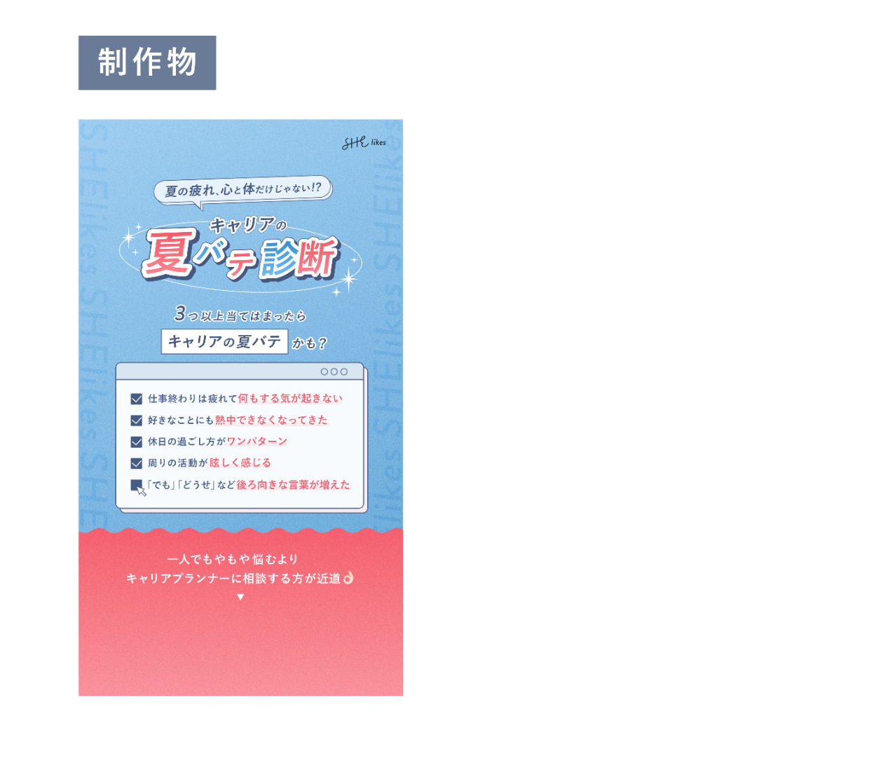フォロワー約15万人の女性向けキャリアスクールSHElikesの公式Instagramに掲載するすおーリーズを制作しました。体験レッスン申し込みを目的とした制作物になります。(使用ツール:Figma)