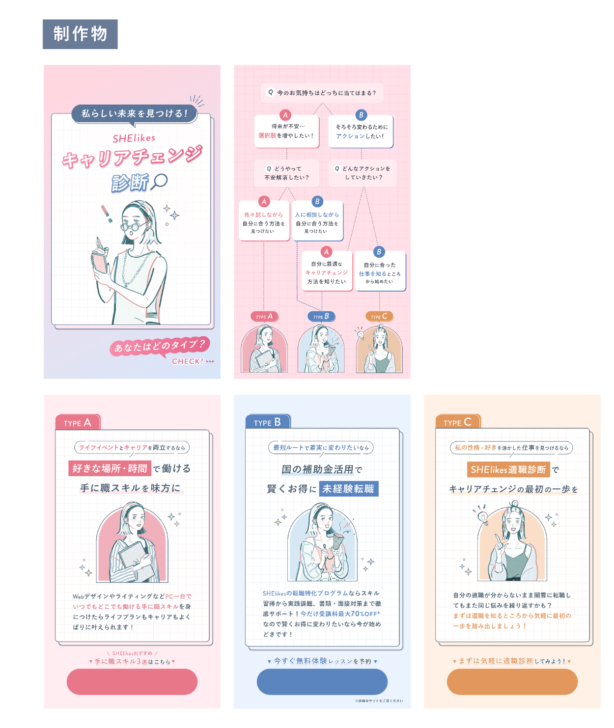 ・キャリアチェンジ診断の結果に応じて、適切なLPへ遷移させる導線を作成。