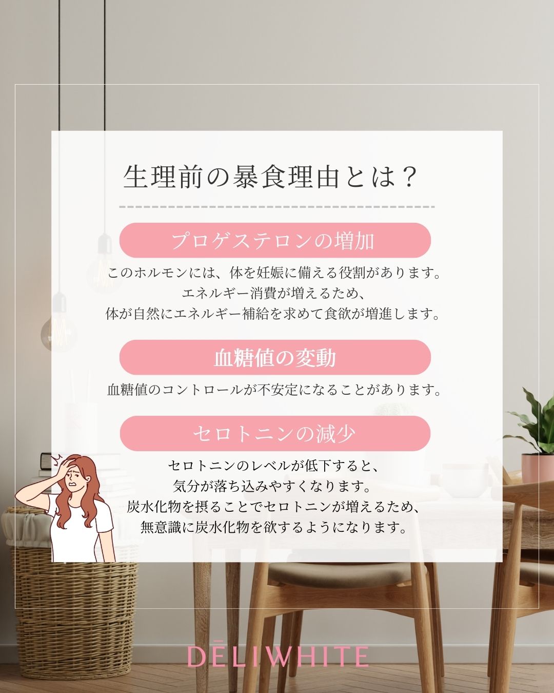 2枚目 ▶︎ 生理前の暴食理由について紹介
